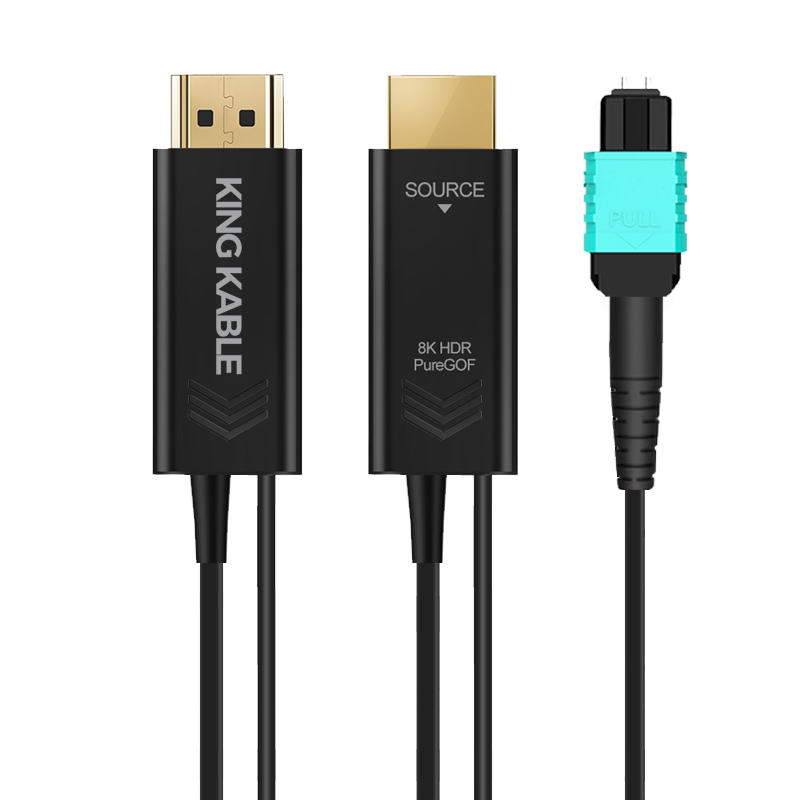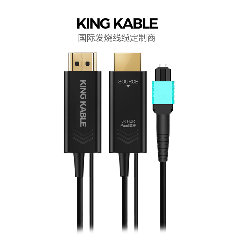 KING KABLE纯光纤HDMI线2.1版是当前国际上领先的光电转换技术,其采用高阶激光器和驱动芯片,并以独特的六芯万兆光纤芯作为信号传输载体(传输线缆无铜芯),具有无损无辐射、纤细强韧、分体可拆易穿管、支持未来升级等众多优势性能,广泛应用于医疗领域、安防监控、广播会议、船舶舰艇等环境。