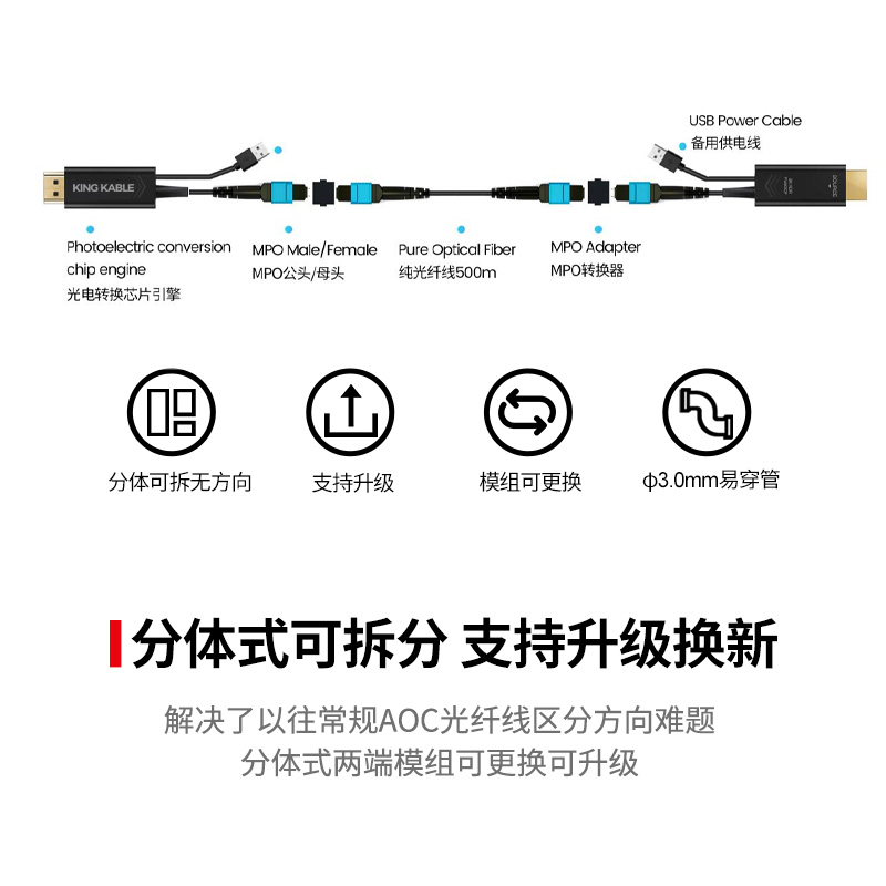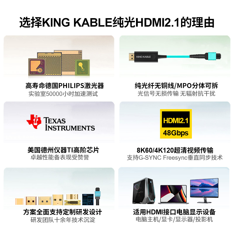 【1】KING KABLE 珑骧纯光纤HDMI2.1线(型号HD011)产品特点: