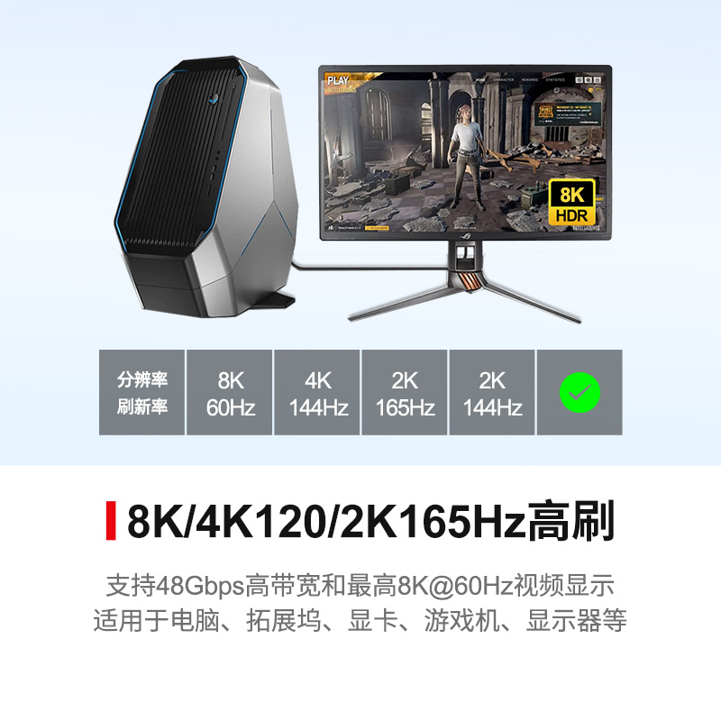核心特性 | 8K@60Hz, 4K@120Hz超高清高刷新率音视频信号传输 |