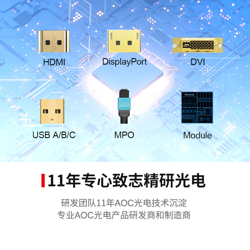 · 支持更换两端模组变换线缆类型(可转换为纯光纤HDMI线/DP线/DVI线等)